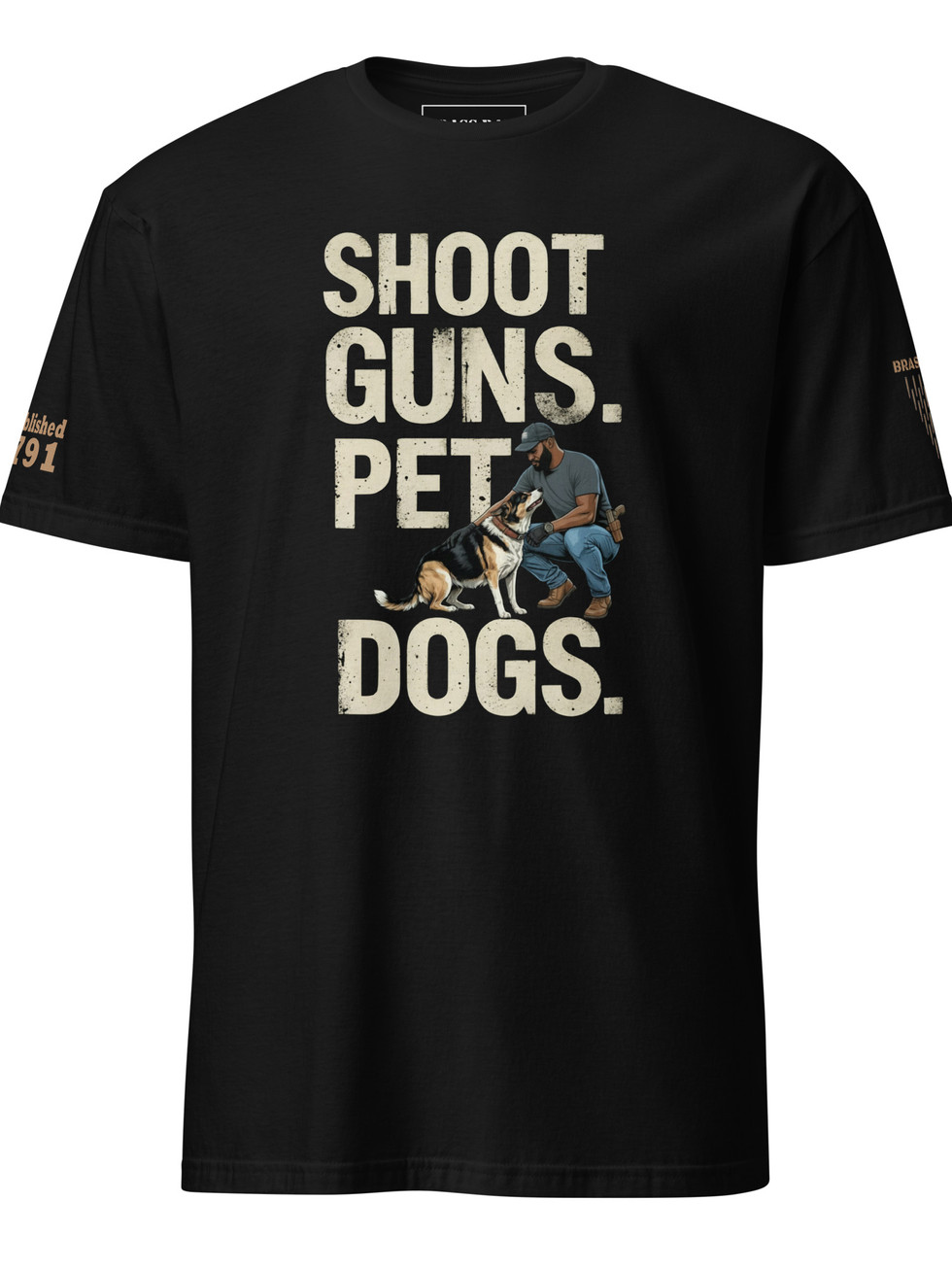 This shirt says what a lot of people live every day but rarely see represented — a respect for firearms and a love for man’s best friend. Responsibility. Loyalty. Discipline. Heart.